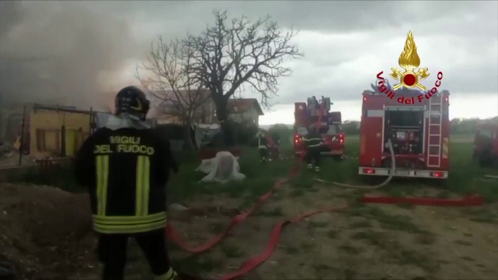 Firefighters pulled two people alive from the rubble of a partially collapsed workplace in central Italy on Friday following an explosion, which had caused a fire. According to the firefighters' Twitter account, another survivor was still trapped under the rubble. In total, three people were still missing at the workplace described as a laboratory producing marijuana for medical purposes, according to local media.