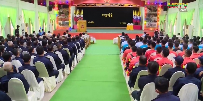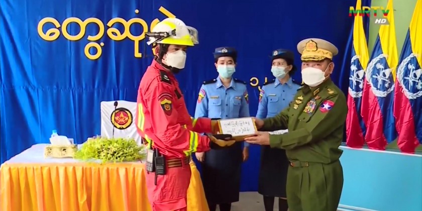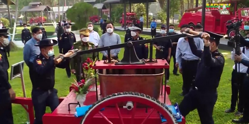 Member of the State Administration Council Union Minister for Home Affairs Lt-Gen Soe Htut, together with officials, visited Myanmar Fire Brigade Headquarters in Yangon on Saturday, and observed the displays of ancient fire engines at the museum.