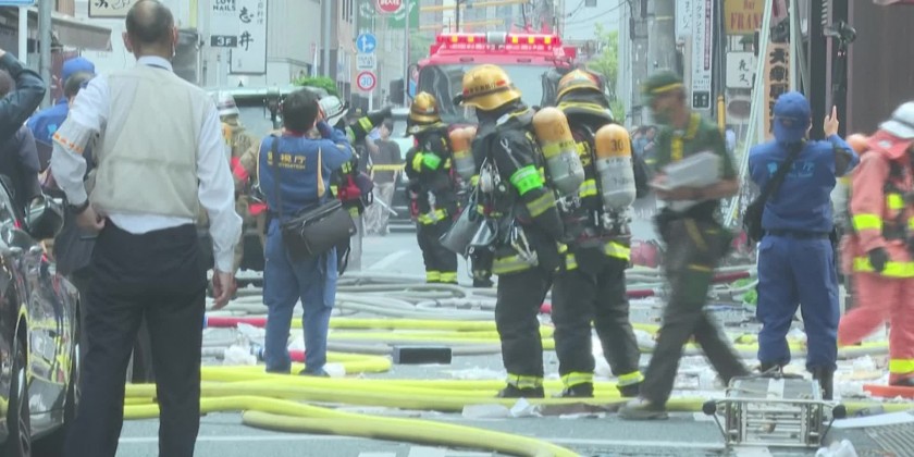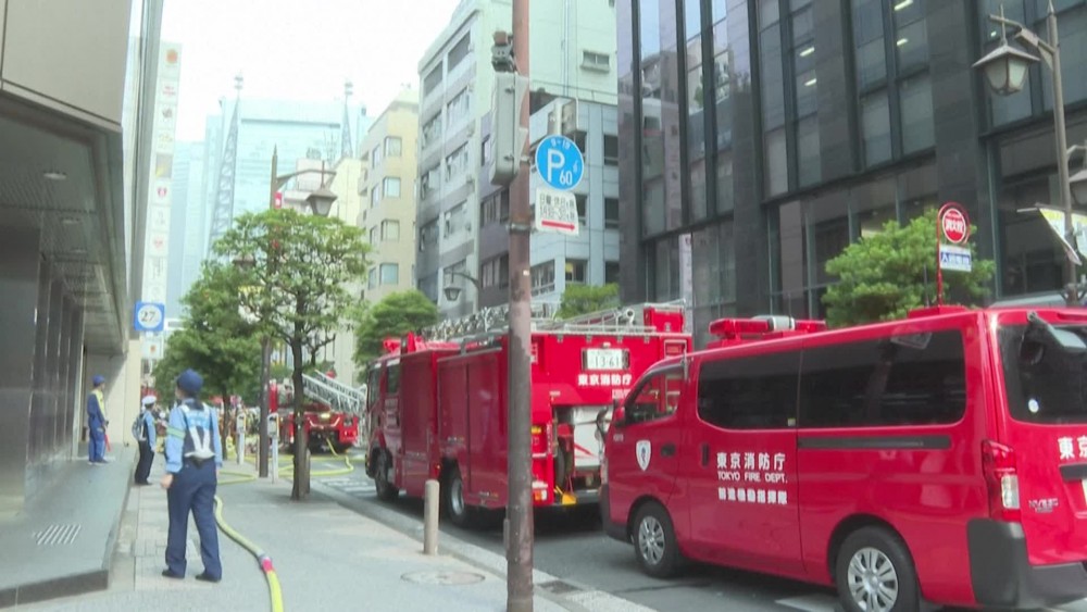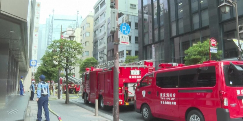 Four people were injured in a blast and a blaze in a central Tokyo building, the city's fire department said, with footage showing flames and smoke emerging from a second-floor business. The fire started in a building in a restaurant area of the bustling Shimbashi district on 3rd July.