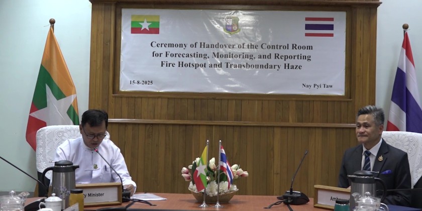 The Department of Environmental Conservation hosted the technical equipment handover ceremony for Fire Hotspot and Haze Monitoring in conjunction with the Technology Management Skill Training on Friday with the support of the Thailand-Myanmar Transboundary Haze Pollution Management Project (Phase 2).
