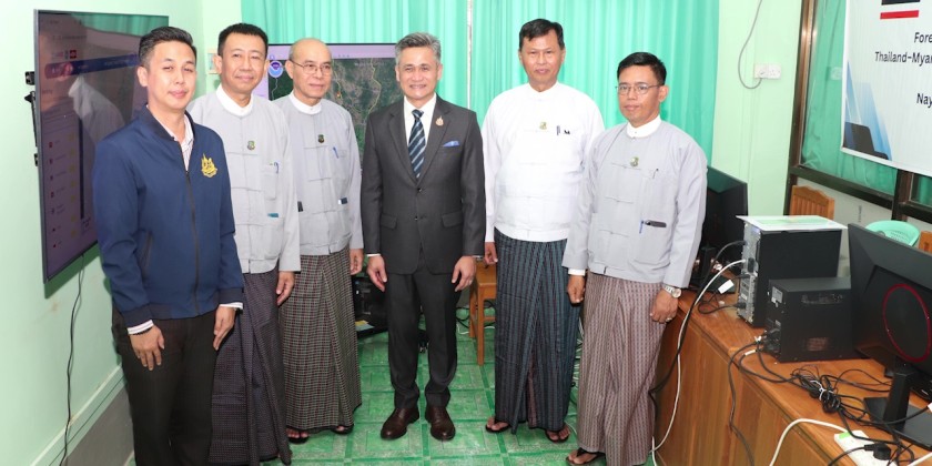 The Thai Ambassador then handed over the donated equipment to the Deputy Minister. The Myanmar delegation also offered commemorative gift to Thailand delegation in return. Then, both the delegation and invited guests toured the computer control room and observed the training in fire hotspot and haze monitoring.