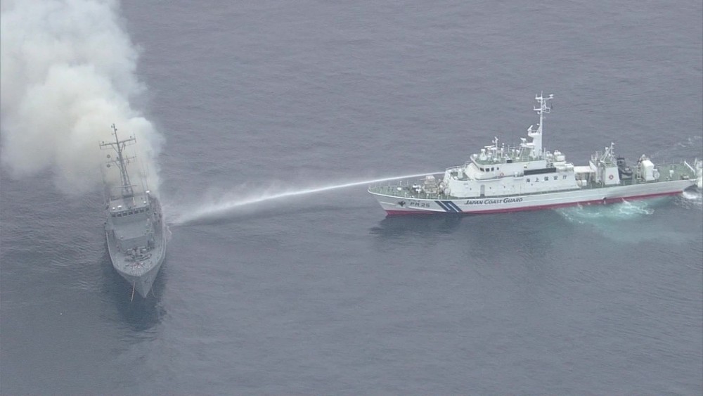 A fire on a Maritime Self-Defense Force (MSDF) minesweeper navigating near Southwestern Japan has left one crew member missing and another injured. MSDF officials say the fire broke out on the minesweeper Ukushima about two kilometers north of Munakata City’s Oshima Island in Fukuoka Prefecture at around 9:40 a.m. on Sunday.