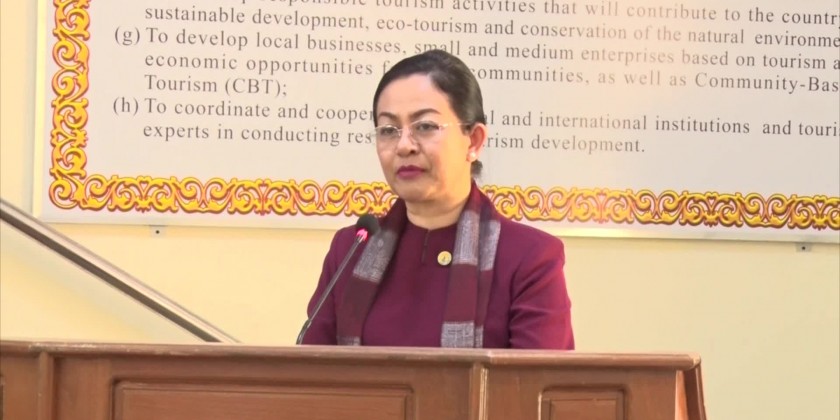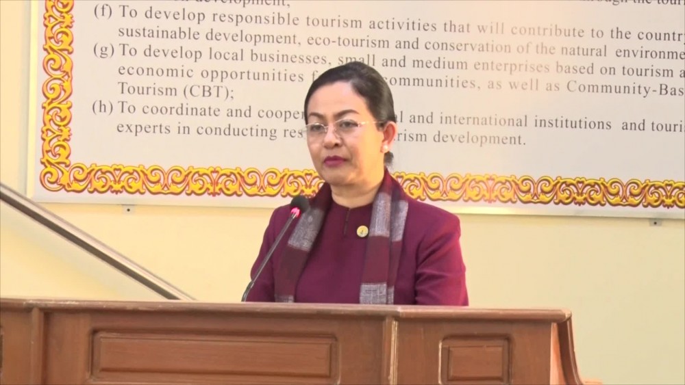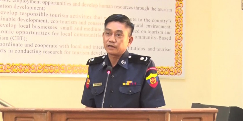 The Union Minister for Hotel and Tourism Dr. Thet Thet Khine gave a remark at the event of clarification on the fire safety plan held at Jade Hall of the Ministry in the afternoon on 9th April.