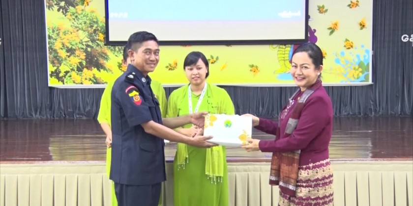 Next, the officials from Fire Service Department of Myanmar Fire Brigade clarified the basic principels of fire breaking, preparedness for fire hazards and points to avoid, fire extinguishing processes and the experiences gained in the fire extinguishing.