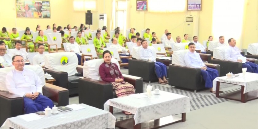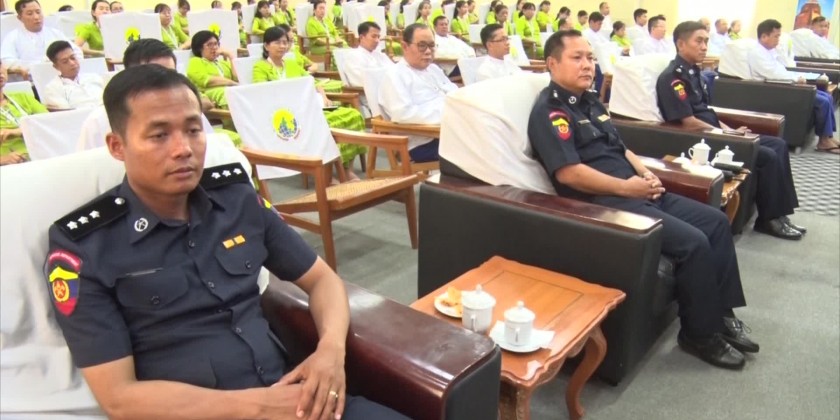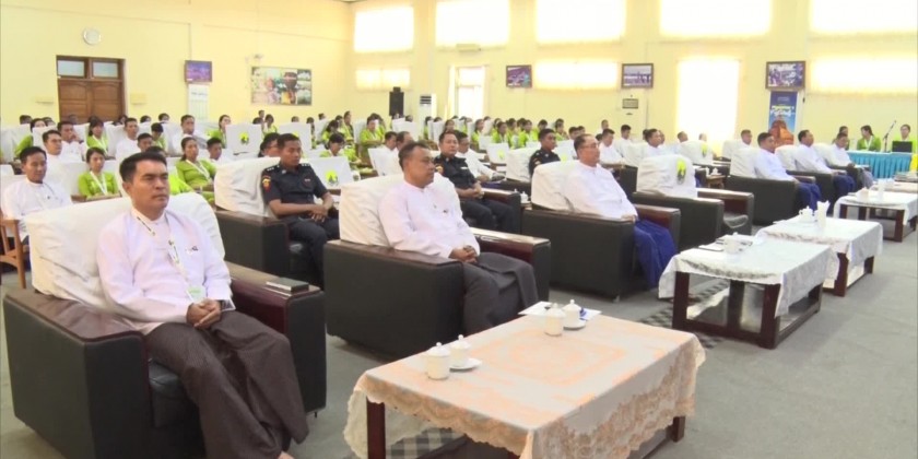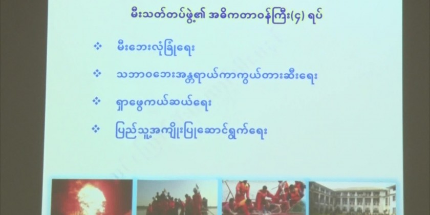 Then, Director U Khin Maung Soe from the Administration and human resource management division under the Union Minister’s Office explained the formation of supervising group to carry out the work processes in the ordinary time, time of fire breaking and aftermath of fire, group for preparedness, fire extinguishing group, moving and transferring group, security group, transportation group and their assigned duties, the attendees asked questions on their curiousness and the Union Minister presented memorable gifts to the officials from the Fire Service Department.