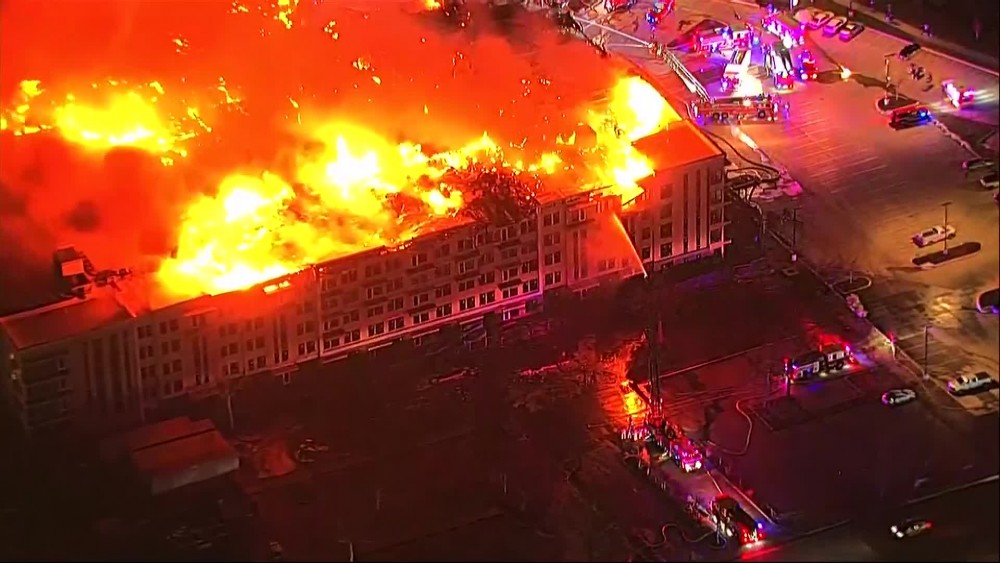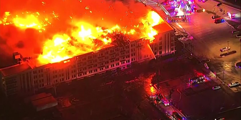 A massive fire late Tuesday ripped through an empty five-storey hotel and apartment complex in northwest Oklahoma City that was under construction. There were no injuries reported in the blaze at the construction site, which prompted a “five-alarm response” with more than 80 firefighters on the scene. The roofing material involved was kind of a rubbery material that does not go out easily with water once it’s on fire. It was just melting and pooling and continued to burn and it just spread very quickly across the rooftop of this large building. The fire burned for more than four hours, and there was extensive water and smoke damage throughout the structure.