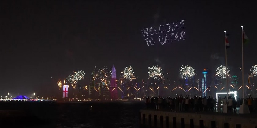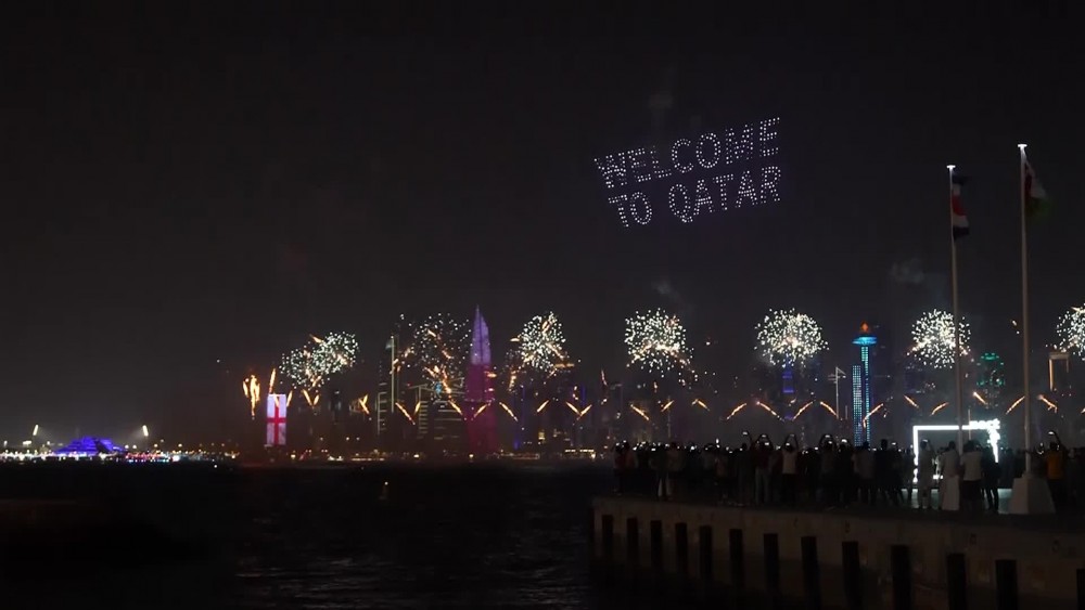 The firework show, complete with illuminated drones, dazzled the crowds gathered along the waterfront. The barrage of fireworks boomed before disappearing into the sky over Doha's glittering skyscrapers.