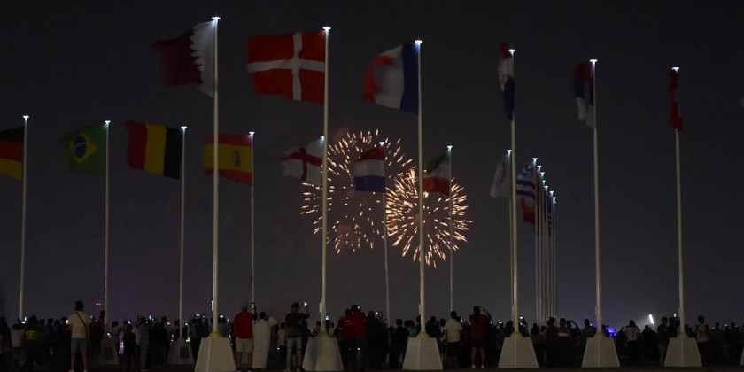 As night fell fireworks fizzled and crackled over the waterfront in Doha to welcome the legions of fans to the country and celebrate the day before the opening of the FIFA World Cup.