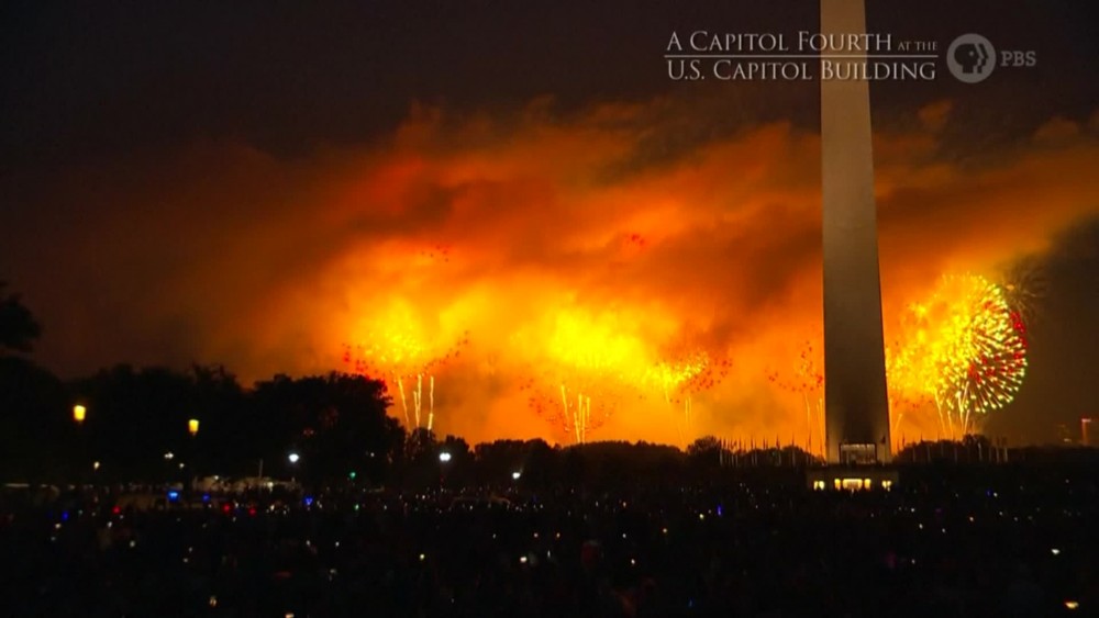 The skies over Washington, D.C., were aglow in red, white and blue fireworks on Thursday as the nation's capital marked the Fourth of July holiday with a concert and fireworks display. Thousands of people gathered to watch the annual display and to enjoy the televised PBS "A Capitol Fourth" concert that celebrates America's Independence Day. The all-star concert line-up included the O'Jays, a tribute to Aretha Franklin and the National Symphony Orchestra.