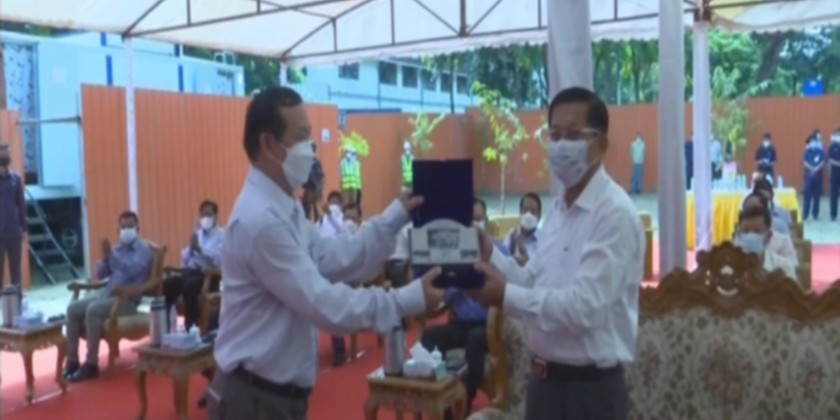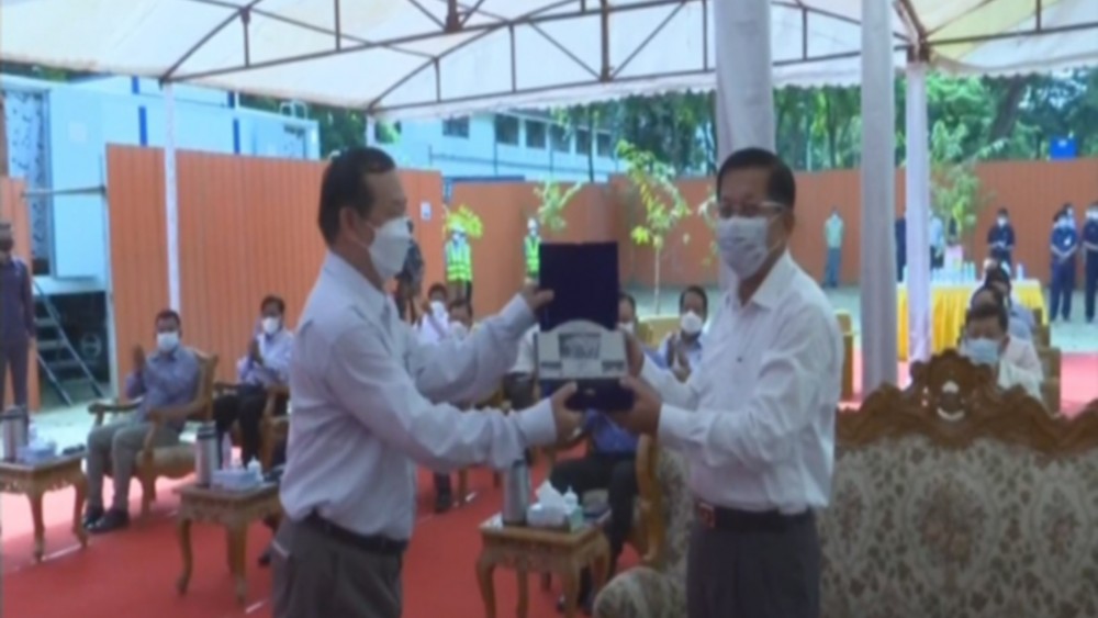 Also, the Yangon Region Chief Minister presented a gift to mark the opening of the underpass to the Senior General. The Yangon Region Chief Minister, the Commander of Yangon Command and the mayor formally opened the underpass and the Senior General unveiled the entrance to the underpass.