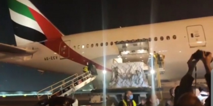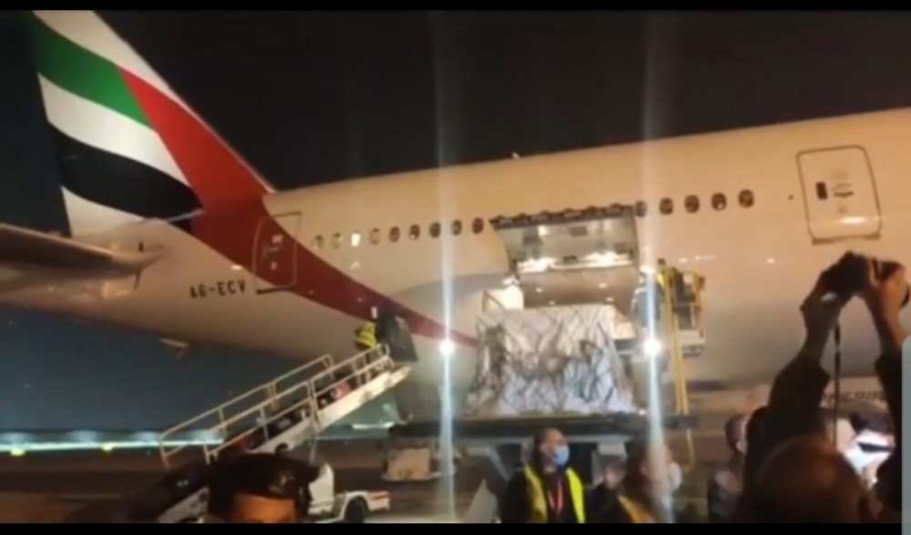 Health minister and diplomats from China and the UAE were at the airport to greet the shipment.