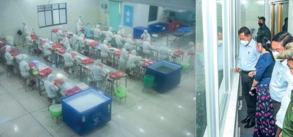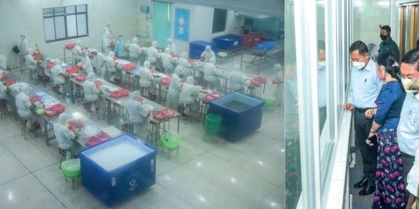 Vice Chairman of the State Administration Council Deputy Commander in Chief of Defence Services, Commander in Chief (Army) Vice Senior General Soe Win, together with the SAC members, Senior Military Officers and officials, visited 10,000 toned Cold Storage Factory of Pyae Phyo Tun International Co., Ltd. In KyunSu Township on Tuesday.