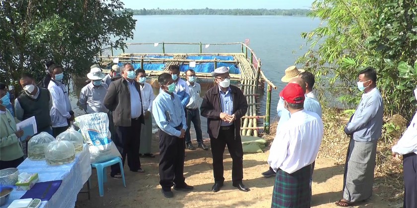 On December 24, Deputy Minister for Agriculture, Livestock and Irrigation Dr Aung Gyi, together with officials, inspected the fish farms and also added fingerlings to the farms. The Deputy Minister also met with fish breeders and called for their cooperation in implementing the caged fish farming method.