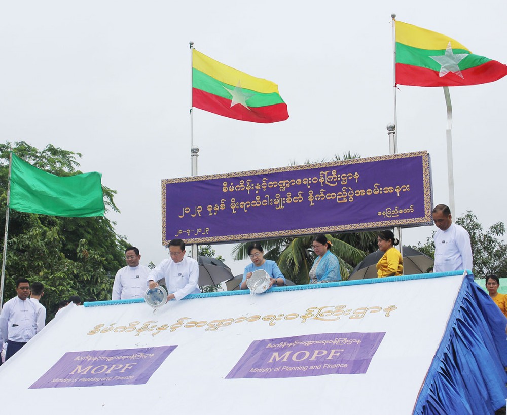 The Ministry of Planning and Finance 2023 Monsoon Season fish releasing ceremony was held at the Mingalar Lake in Zabuthiri Township, Nay Pyi Taw in the morning on 21st July.