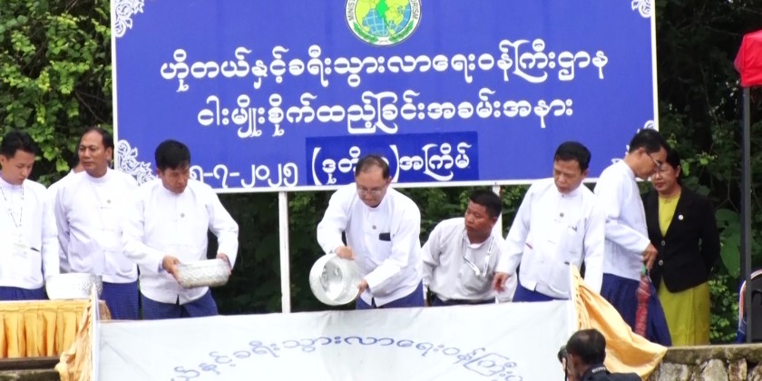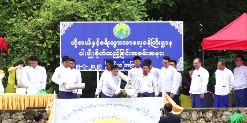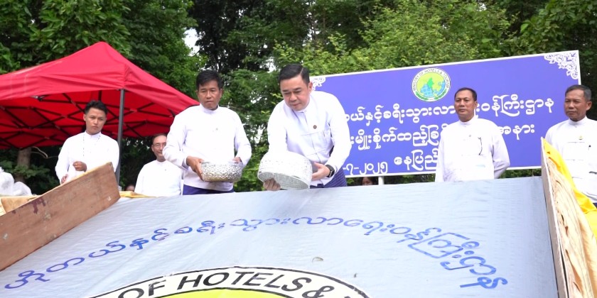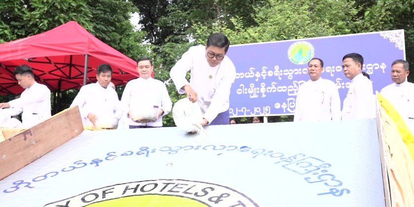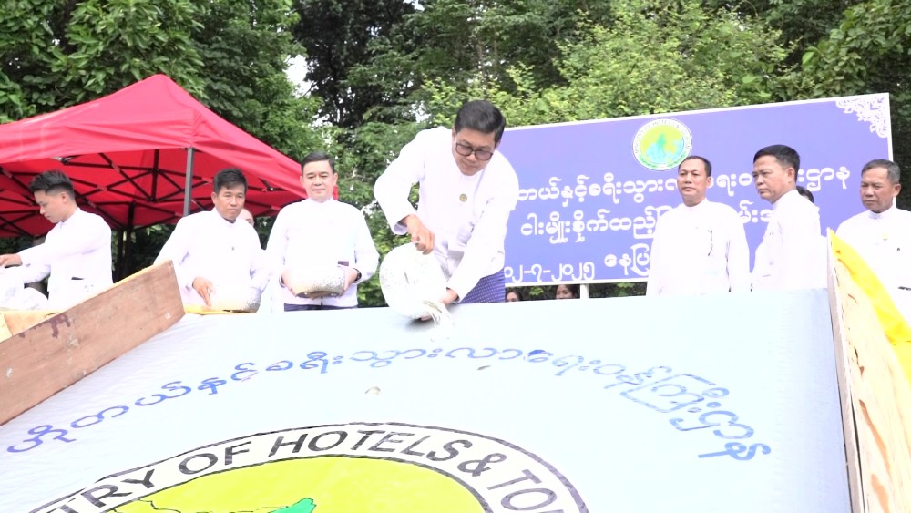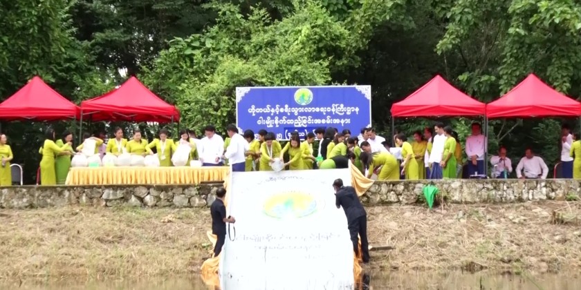 The Ministry of Hotels and Tourism held its second fish stocking ceremony at the Check Dam near the Ministry's office building in the afternoon on 25th July. The event aimed to prevent the depletion of fish species, ensure the sustainable propagation of fish resources, and achieve self-sufficiency in fish consumption. Union Minister for Hotels and Tourism U Kyaw Soe Win, the Permanent Secretary, the Director-General, senior officials, and staff from the Ministry attended the ceremony.