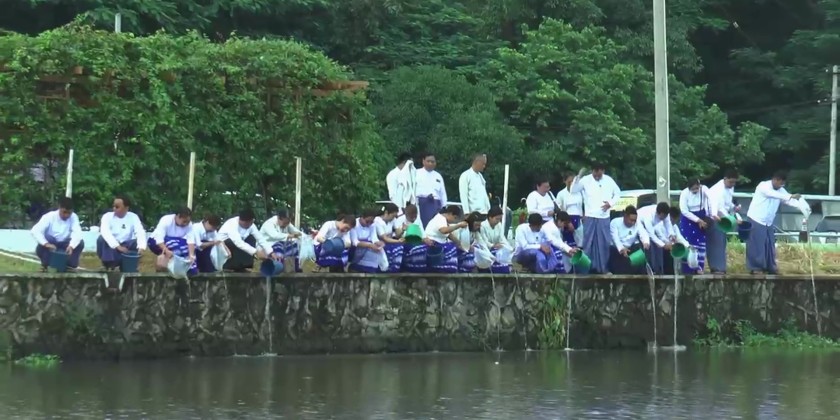 The event was attended by Union Chief Justice U Tha Htay and his wife, Justices of the Union Supreme Court and their wives, Directors-General, Deputy Permanent Secretaries/Deputy Directors-General, and other officers and staff, who all participated in releasing fish.