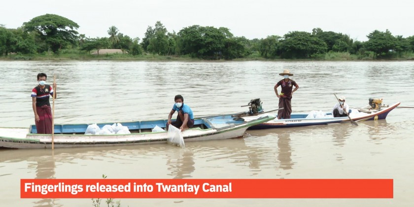 A total of 400,000 fingerlings were released into Twantay Canal during the ceremony.