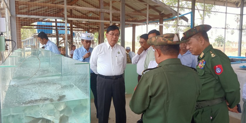 Magway Region Chief Minister U Tint Lwin, accompanied by concerned officials attended the opening ceremony of the fishery camp at the Taungdwingyi Township Department of Agriculture, Livestock and Irrigation on Saturday.