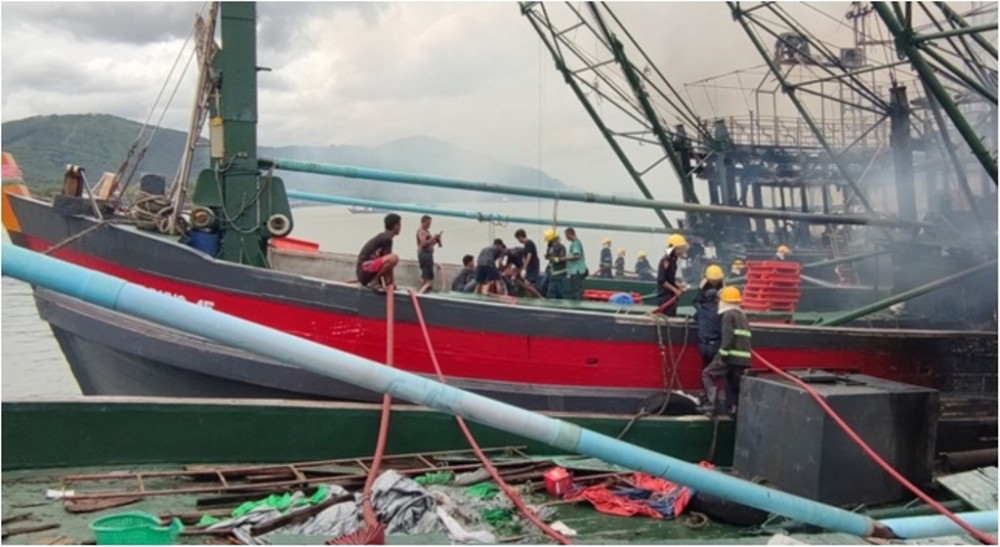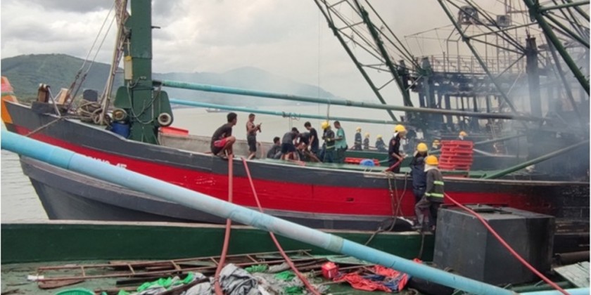 The fire broke out from a fishing boat out of 5 owned by U Soe Lwin, docking near Shwe Wet Wun bridge in Kawthaung, Taninthayi Region at about 1:30 pm on Monday due to electric wire shock while repairing power cable lines.