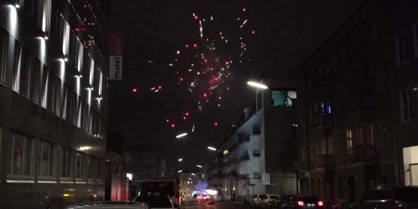 Police officers patrol the streets of Berlin as people set off fireworks to celebrate New Year. Across Germany, five people died in accidents linked to fireworks and in the capital, a police officer was severely injured.