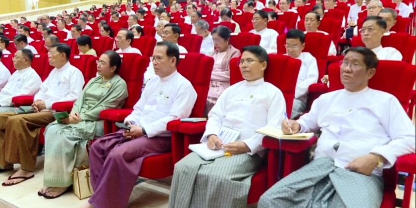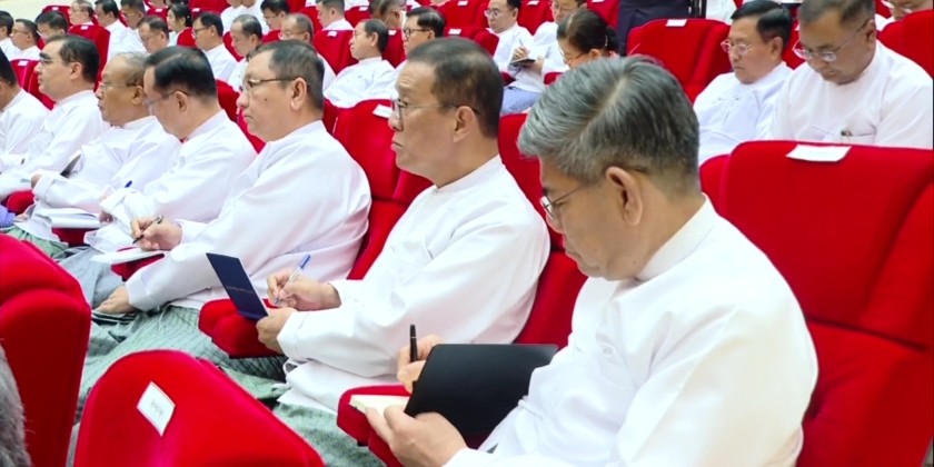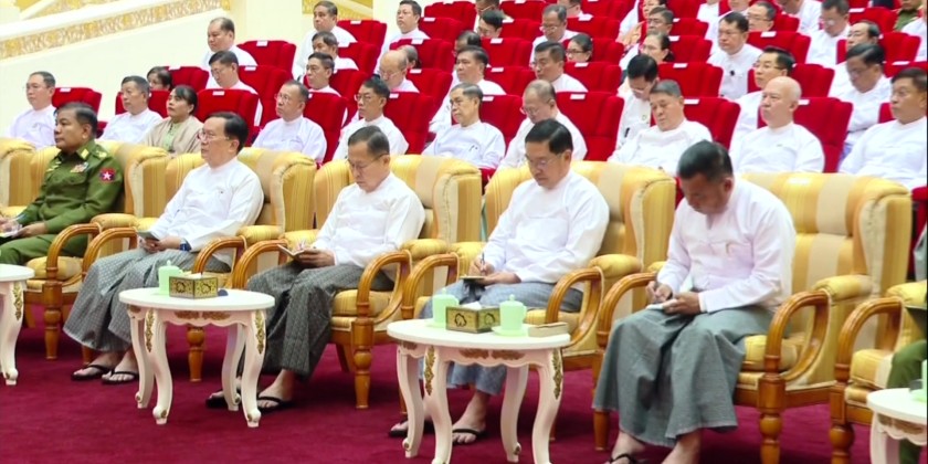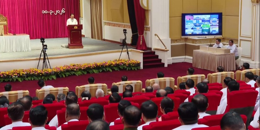 Region and State Chief Ministers along with Region and State government members participated via Video Conferencing. During the meeting, the Acting President SSPC Chairman of the State Administration Council Senior General Min Aung Hlaing delivered an address.