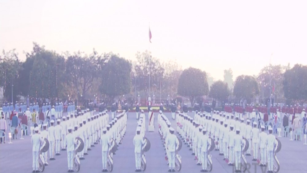At 6:30 am, the Guard of Honour also saluted the nation’s martyrs and fallen soldiers and took the four point oath.
