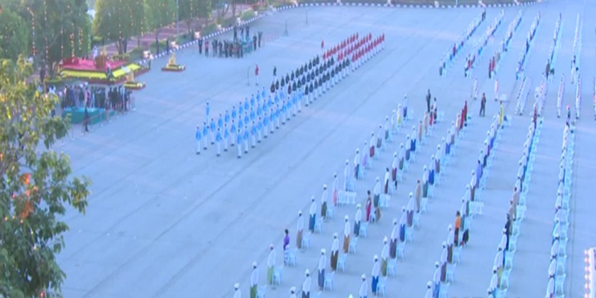 The ceremonies to hoist and salute the national flag to mark the 74th Independence Day were held in Nay Pyi Taw in the morning on 4th January, 2022. The events took place in front of Nay Pyi Taw City Hall in line with the rules and guidelines of COVID-19 preventive measures. The flag hoisting platoon raised the national flag at 4:20 am, along with the ethnic races.