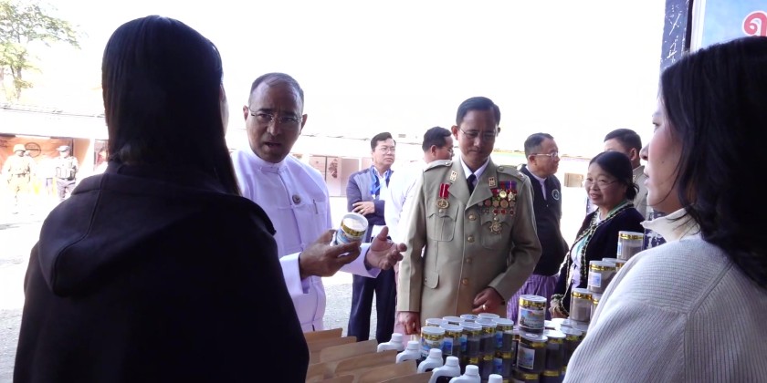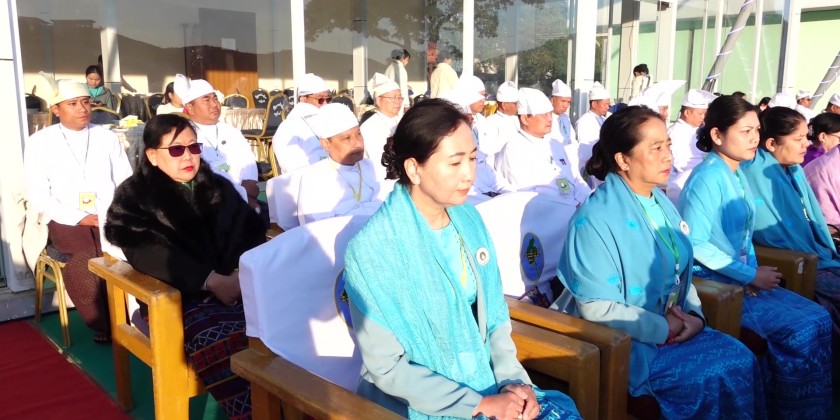 Led by the honour guard, the flag of the Republic of the Union of Myanmar was raised. Subsequently, members of the State Government who attended, state-level departmental officials, and local ethnic nationals paid a salute to the flag of the Republic of the Union of Myanmar and to the fallen leaders.