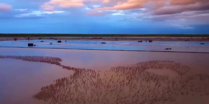 Flamingos traditionally migrate to Rajasthan’s Sambhar Lake between November and March. Sambhar Lake is a critical stopover along the Central Asian Flyway, one of the world’s major bird migration routes. It is a saline wetland and the source of most of Rajasthan’s salt production.  The lake was designated a Ramsar site status in 1990 due to its ecological significance.