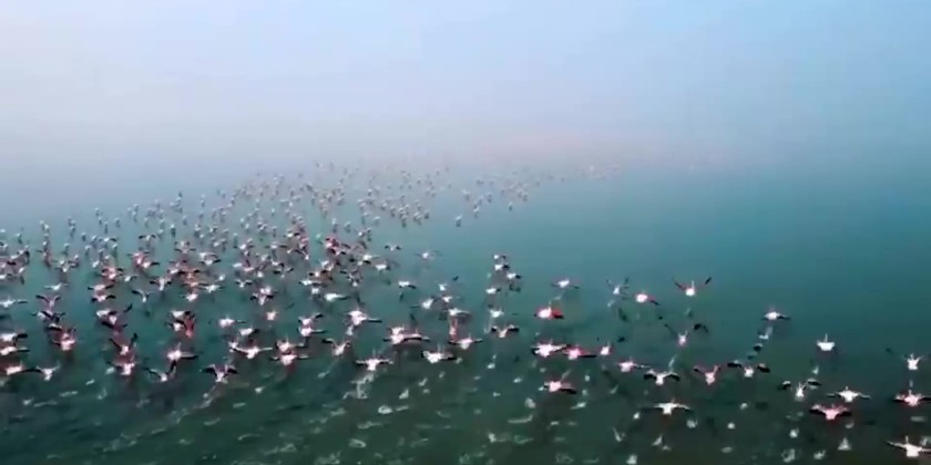 Flamingos bring liveliness to Sambhar lake in India’s Rajasthan state