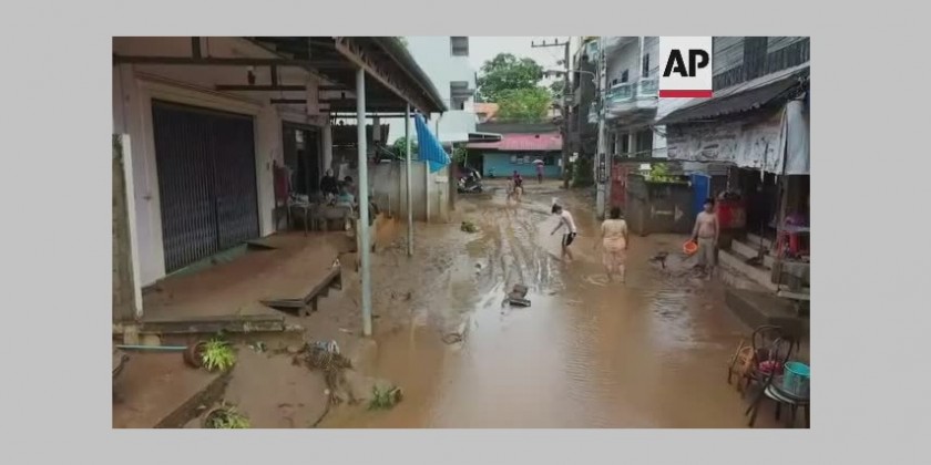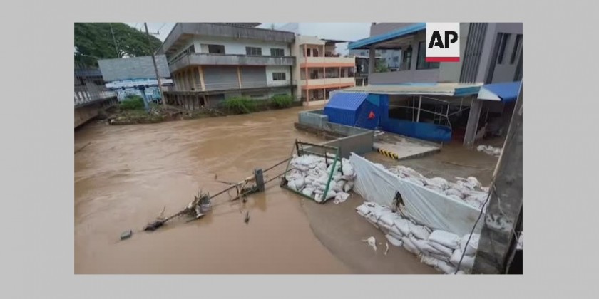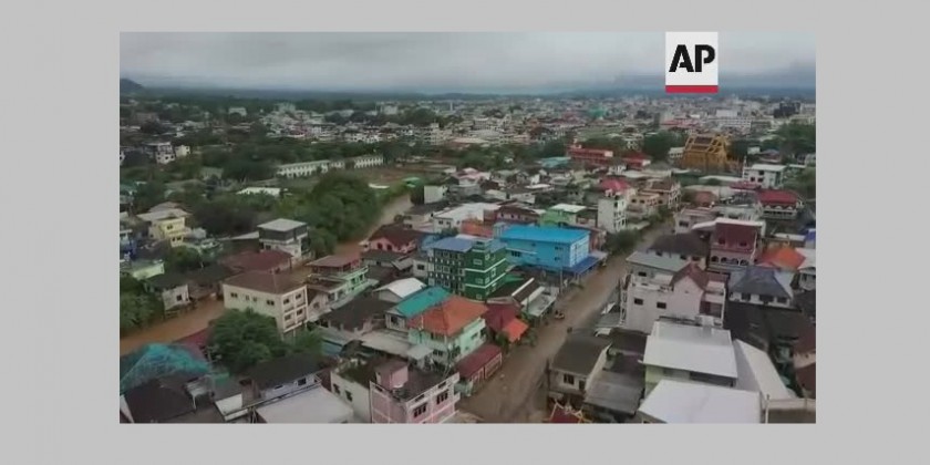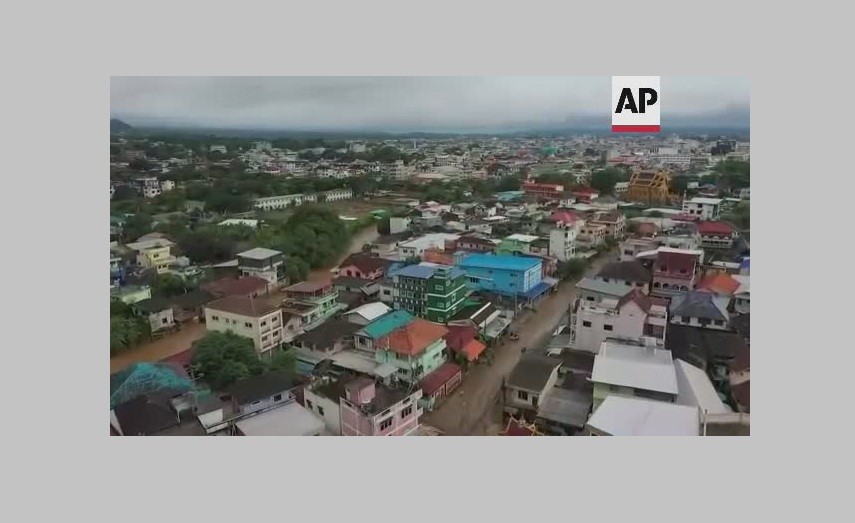 Flash flood hits northern Thailand town of Mae Sai on Saturday. The floods caused by heavy rains from tropical storm Mulan flooded more than 2,000 properties in the Mae Sai province.