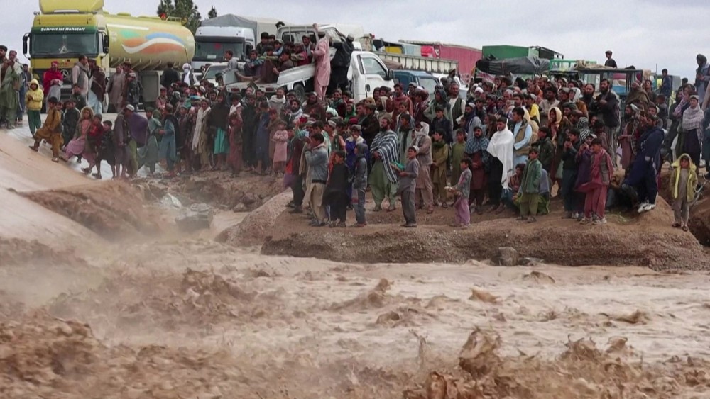 Fast-flowing floodwater surges through the Afghan village of Zawul in Herat province after days of heavy rain and storms. The extreme weather has killed dozens across Afghanistan and neighbouring Pakistan. Villagers are appealing to the authorities to build dams for protection. The situation has left residents feeling miserable as they struggle to secure daily meals.