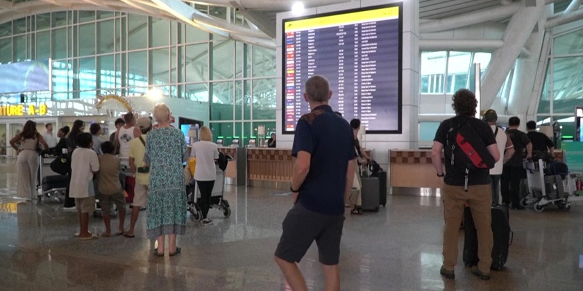 Flight information boards at Bali’s international airport showed numerous cancelled and delayed flights following the eruption of Mount Lewotobi Laki-Laki on March 20.