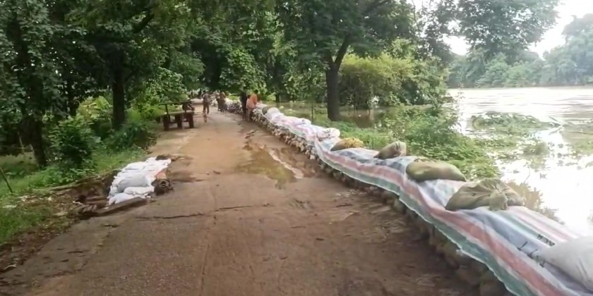 To mitigate the risk of inundation caused by the river's surge, preparation measures are being implemented along the embankment. These include placing sandbags in low-lying areas and preparing for evacuation procedures in the event of a disaster.
