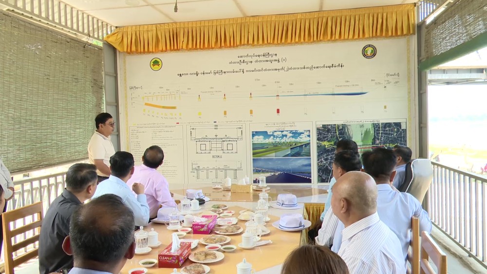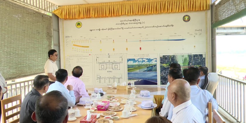 At sand dredging operation site, the Chief Minister coordinated necessities to meet targeted areas. They also inspected the piers construction of the Bala Min Htin Bridge No.2 and water erosion prevention measures carried out at Bala Min Htin Bridge No.1.