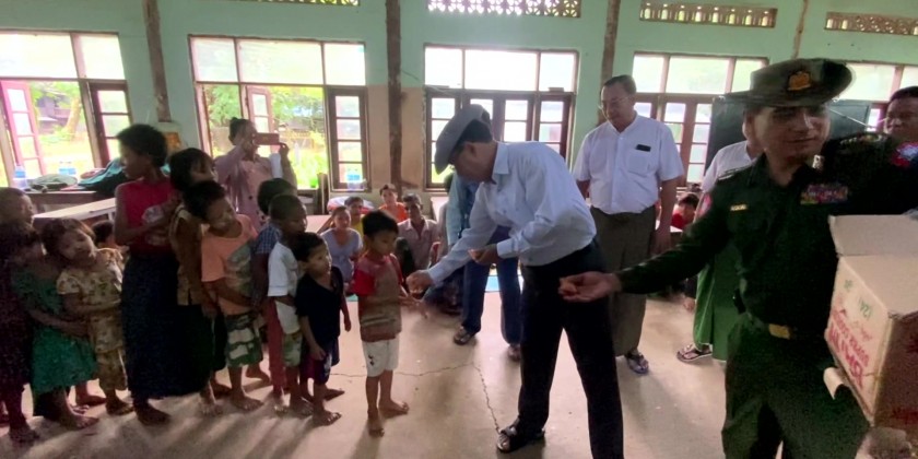 On the same day, the Chief Minister visited 2 other temporary flood relief camps, gave words of encouragement to the flood-affected people and provided basic foodstuffs. There, he also provided cash assistance to healthcare workers. And, the Chief Minister made inspections in KyaukKyiSu Ward flooded by heavy rains.