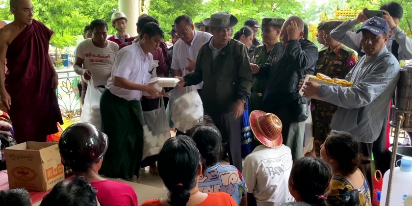 Bago Region Chief Minister U Myo Swe Win visited the natural disaster supervisory office at the Sasana Beikman in Bago Township. There, he coordinated with concerned officials to provide foodstuffs and fulfill requirements of the flood-affected people taking shelter at temporary flood relief camps, and to provide foods to those remaining at houses to look after the houses in the flood-affected areas.