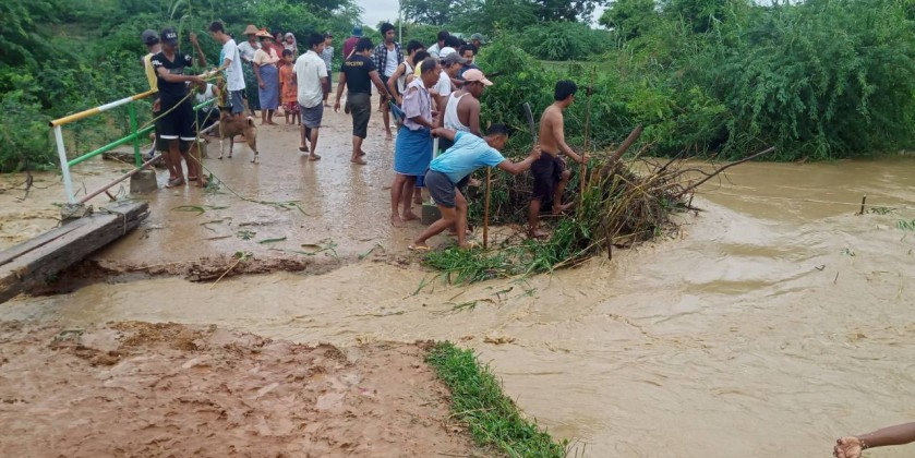 Heavy rains hit Paukkhaung Township area of Bago Region. In KanKyin Village, an 80 feet long and 6 feet wide wooden bridge was swept away. Also, KanKyin-MyayNiGone rural road was destroyed.