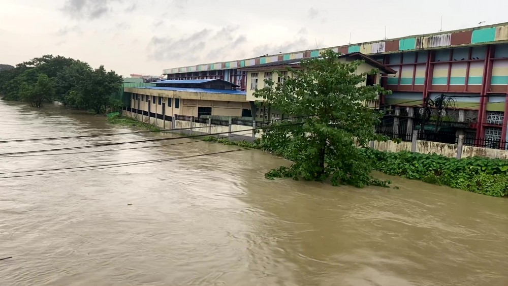 Due to the heavy rainfall in Bago, the water level of the Bago River has exceeded the hazardous mark (880 centimeters).