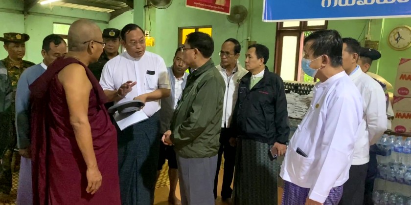 The Chief Minister also inspected preparations to provide foods at the Pon Nya Ku Ta La Mya Chan Tha Community Hall. He also visited flood relief camps, held talks with flood-affected people and provided basic foodstuffs.