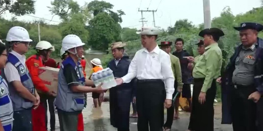 They later visited TadaOo Township to oversee the inundation of Yangon-Mandalay Expressway. Local villagers were evacuated to the safer places and relief items were provided.