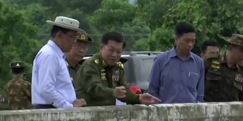The Senior General oversaw the repairing of Sinthay Creek Bridge, connecting Zeyathiri and Pobathiri Township, and instructed for speedy restoration of transportation, and systematic repair works for long term durability with disaster resistant plan. He also instructed for convenient arrangement of affected victims at the relief camps.