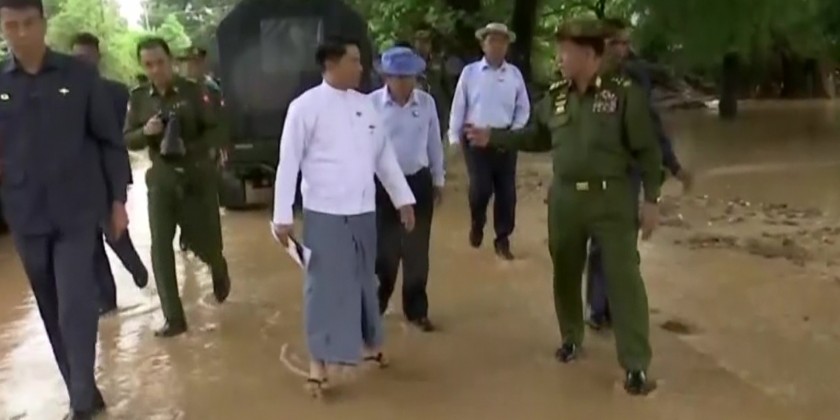 They also inspected the clearing of debris at Sinthay Creek crossing Aye Myint Thaya Bridge, and instructed officials for proper drainage system and effective use of machineries. He also stressed the need to carry out the relief measures effectively and make arrangements for international assistance.