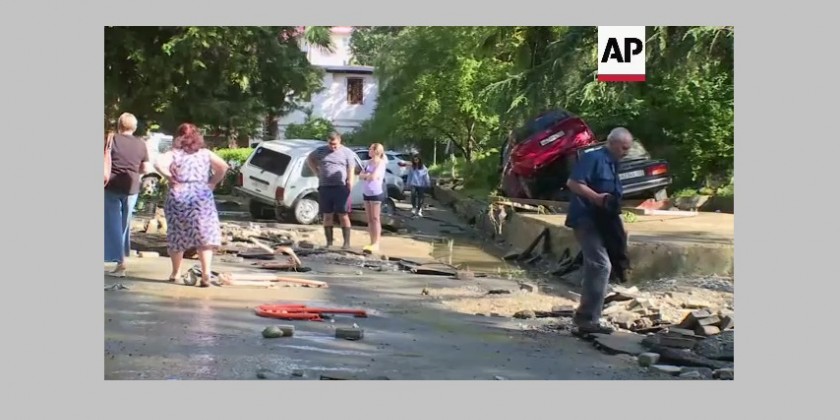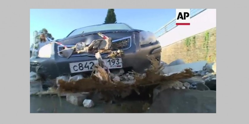 One woman has died and dozens of cars damaged after floods caused by heavy rain hit Russia's southern city of Sochi on Sunday.
