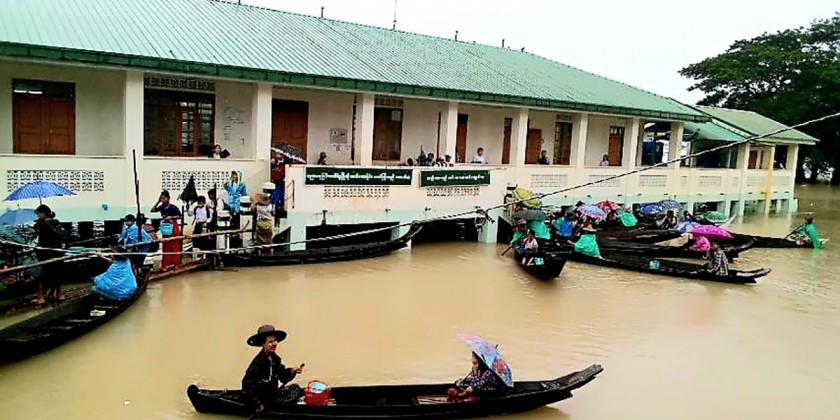 Twelve additional basic education schools in Thabaung Township, Ayeyawady Region, have been temporarily closed as of July 31st due to flooding caused by the surge of the Ngawun River.