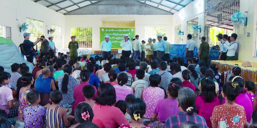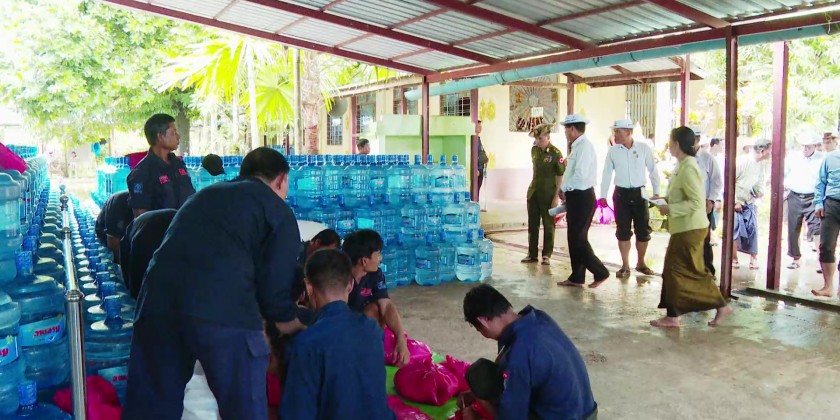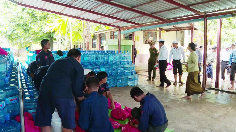 With the supervision of the Regional Government, relief items were distributed to the victims by local administrative bodies and volunteers. Likewise, over 9,000 people from 29 villages in Kungyankone Township were evacuated to the Sasana Hitakayi Monastery. Relief items were provided for the affected people by the officials.