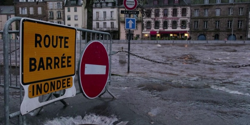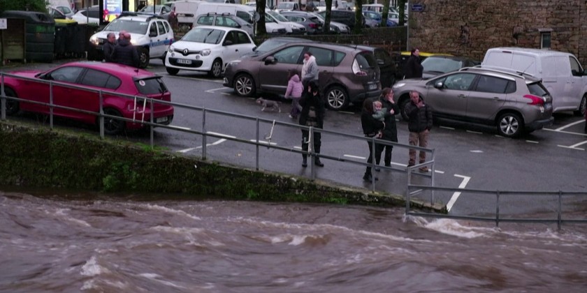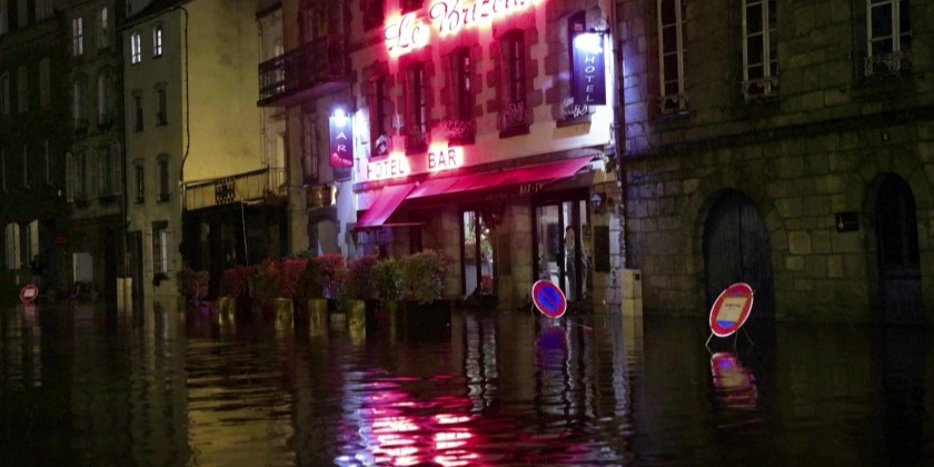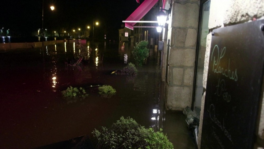 The rapid rise of the Laïta river causes flooding in the town Centre of Quimperlé, in French , submerging quays, streets and shops in the lower part of the town. The French departments of Finistère and Morbihan have been kept under orange alert for flooding on Thursday, although the rain–flood warning has been lifted, according to Météo-France.
