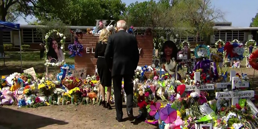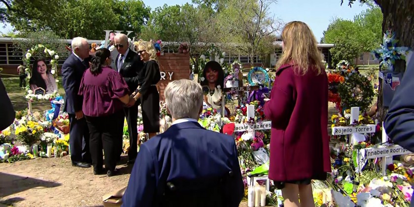 They visited the makeshift memorial outside Robb Elementary School before attending Mass at a local Catholic church.