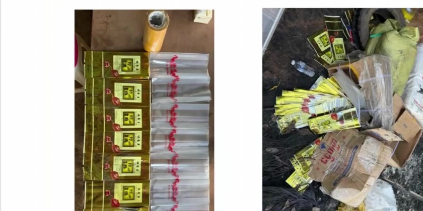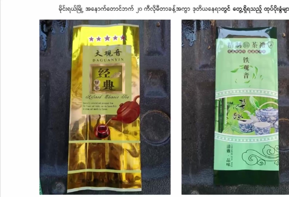 Furthermore, a large number of packaging materials bearing the words "GUAN YIN WANG" and packaging materials with Chinese characters were also seized from this second location and from a third location about 19 km to its southwest. In 2025, out of the 37.815 tons of Ice seized nationwide in Myanmar, 11.686 tons were found in packaging marked "GUAN YIN WANG" and 0.96 tons in packaging with Chinese characters, totaling 12.646 tons (with a total estimated street value of 252.92 billion Kyats).
