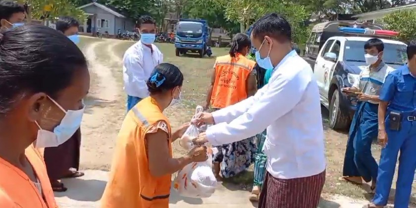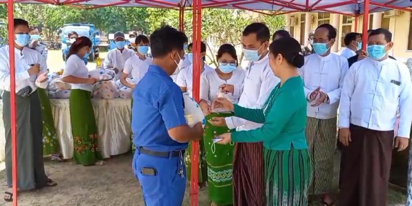 Bago Region Government provided food aid to cleaning staff of Bago Township Development Committee on Sunday.